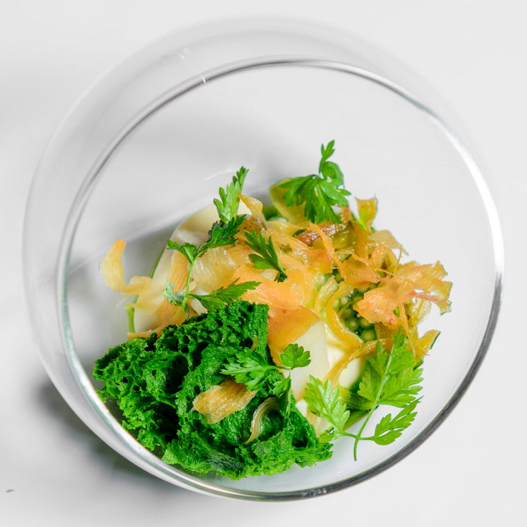 The mayor of Gdansk welcomes us. Maciej and Jacques present the award of Chef of the Future 2025 to Beata, the Sommelier prize, the Pastry Chef prize, the literature prize, the Polish gastronomy prize, etc… Fabien finally arrives after a long plane delay! Fabien: “Great progress has been made in Poland.” Maciej thanks him. The first three courses are fresh plates made of vitamin-rich vegetables. Vegetable verrine on green moss. Pickled cauliflower, tomatoes, red pepper purée, cucumbers, radishes. Tomatoes, redcurrants, red pepper purée, cheese shavings. Baskets of various breads, mustarded butter in the shape of a pâté. On large pebbles is a duo of shells, one with a cooked oyster and the other with raw beef marinated in orange juice. Pike-perch fish on a pumpkin purée, mini shrimps, pickled vegetables in dices. Cream-filled baba with beer ice cream. The wines are well chosen. Maciej calls the Chefs and Jacques gives the review: “Excellent dinner, very good sommelier. You two fully deserve the Chefs of the Future awards. It was a complex cuisine, the beef and oyster was a challenge based on exceptional ingredients. Fantastic tomatoes. Thank you very much!“