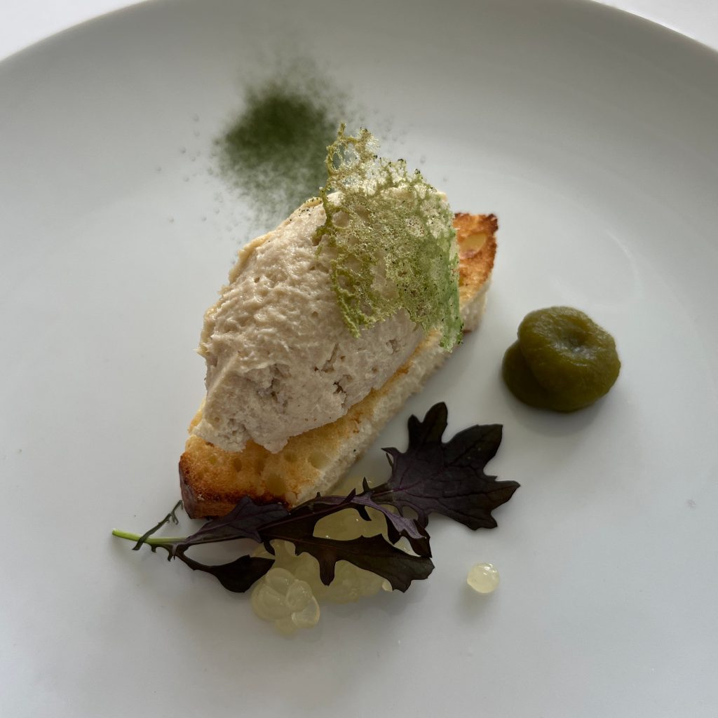 In the evening, we walk 200 meters to Artus Court, the historical building that served as a meeting place for merchants and a centre of social life. Today, it is a branch of the Gdansk History Museum. Our gala dinner takes place in a superb ballroom richly decorated with reproductions of maritime vessels in suspension. Champagne as an aperitif. Black tablecloths and seats covered in black fabric, waiters also in black and tables centred by floral arrangements, fine Gerpol cutlery. Quartet of female musicians. Maciej from the podium: “Once again, we celebrate the presentation of special A.I.G. awards for 2025. Gdansk has been nominated European Capital of Gastronomic Culture 2025-26. We greet Fabien, Jacques and Naji. Dinner is prepared by two talented Chefs, Cheffe Beata Śniechowska, winner of the Chef of the Future 2025 award and Chef Jacek Koprowski, winner of the Chef of the Future 2024 award. The wines have been carefully chosen, sommelier Jarosław Baranowski is the winner of the 2025 Sommelier Award. There is no more sincere love than the love of eating.“